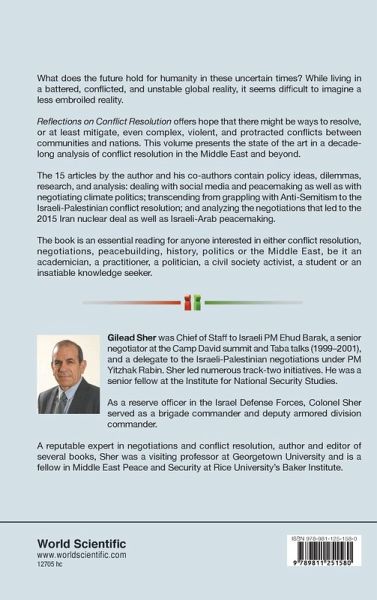 What does the future hold for humanity in these uncertain times? While living in a battered, conflicted, and unstable global reality, it seems difficult to imagine a less embroiled reality. Reflections on Conflict Resolution offers hope that there might be ways to resolve, or at least mitigate, even complex, violent, and protracted conflicts between communities and nations. This volume presents the state of the art in a decade-long analysis of conflict resolution in the Middle East and beyond. The 15 articles by the author and his co-authors contain policy ideas, dilemmas, research, and analysis: dealing with social media and peacemaking as well as with negotiating climate politics; transcending from grappling with Anti-Semitism to the Israeli-Palestinian conflict resolution; and analyzing the negotiations that led to the 2015 Iran nuclear deal as well as Israeli-Arab peacemaking. The book is an essential reading for anyone interested in either conflict resolution, negotiations, peacebuilding, history, politics or the Middle East, be it an academician, a practitioner, a politician, a civil society activist, a student or an insatiable knowledge seeker.