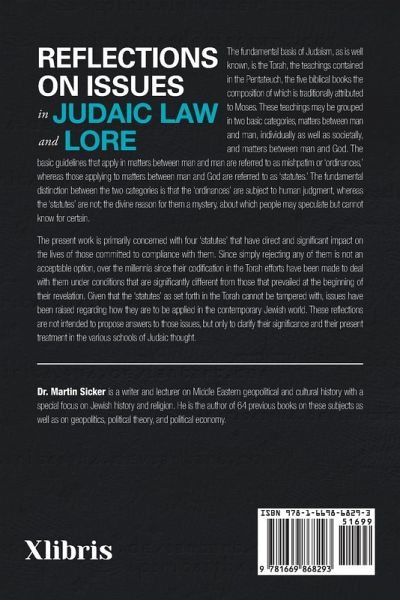 The fundamental basis of Judaism, as is well known, is the Torah, the teachings contained in the Pentateuch, the five biblical books the composition of which is traditionally attributed to Moses. These teachings may be grouped in two basic categories, matters between man and man, individually as well as societally, and matters between man and God. The basic guidelines that apply in matters between man and man are referred to as mishpatim or 'ordinances,' whereas those applying to matters between man and God are referred to as 'statutes.' The fundamental distinction between the two categories is that the 'ordinances' are subject to human judgment, whereas the 'statutes' are not; the divine reason for them a mystery, about which people may speculate but cannot know for certain. The present work is primarily concerned with four 'statutes' that have direct and significant impact on the lives of those committed to compliance with them. Since simply rejecting any of them is not an acceptable option, over the millennia since their codification in the Torah efforts have been made to deal with them under conditions that are significantly different from those that prevailed at the beginning of their revelation. Given that the 'statutes' as set forth in the Torah cannot be tampered with, issues have been raised regarding how they are to be applied in the contemporary Jewish world. These reflections are not intended to propose answers to those issues, but only to clarify their significance and their present treatment in the various schools of Judaic thought.