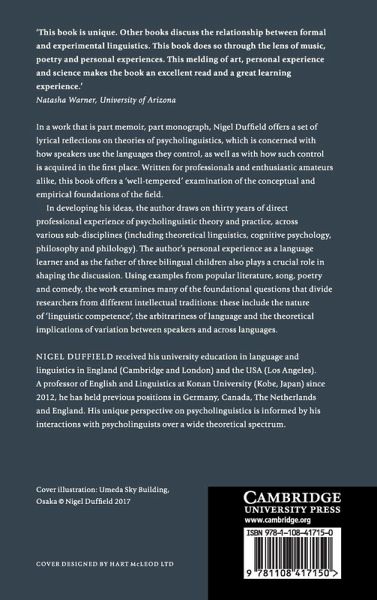 In a work that is part memoir, part monograph, Nigel Duffield offers a set of lyrical reflections on theories of Psycholinguistics, which is concerned with how speakers use the languages they control, as well as with how such control is acquired in the first place. Written for professionals and enthusiastic amateurs alike, this book offers a 'well-tempered' examination of the conceptual and empirical foundations of the field. In developing his ideas, the author draws on thirty years of direct professional experience of psycholinguistic theory and practice, across various sub-disciplines, including theoretical linguistics, cognitive psychology, philosophy, and philology. The author's personal experience as a language learner - more importantly, as the father of three bilingual children - also plays a crucial role in shaping the discussion. Using examples from popular literature, song, poetry, and comedy, the work examines many of the foundational questions that divide researchers from different intellectual traditions: these include the nature of 'linguistic competence', the arbitrariness of language, and the theoretical implications of variation between speakers and across languages.