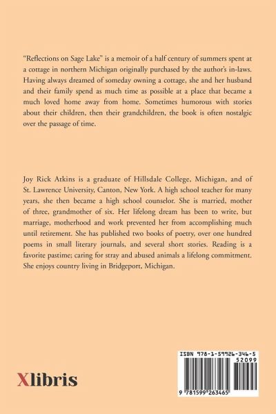 "Reflections on Sage Lake" is a memoir of a half century of summers spent at a cottage in northern Michigan originally purchased by the author's in-laws. Having always dreamed of someday owning a cottage, she and her husband and their young family spend as much time as possible at a place that became a much loved home away from home. Sometimes humorous with stories about their children, then their grandchildren, the book is often nostalgic over the passage of time and dread the author feels as age and failing health prove a threat to their Sage Lake summers.