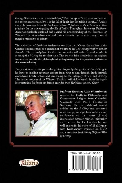 George Santayana once commented that, "The concept of Spirit does not interest me, except as a technicality; it is the life of Spirit that I'm talking about. . ." And so too with Professor Allan W. Anderson whose Reflections on the I Ching is written precisely for the one engaging the life of Spirit. Throughout his career, Professor Anderson tirelessly explored and shared his understanding of the Perennial or Wisdom Tradition whose essential features remain the same in every classical religion regardless of culture. This collection of Professor Anderson's work on the I Ching, the earliest of the Chinese classics, serves as a companion volume to his Self-Transformation and the Oracular. The transcription of a short lecture series will assist the student who is meeting the I Ching for the first time. The articles delve deeply into the original text and so provide the philosophical underpinnings for the practice outlined in the extended essay. Every scripture has its particular genius. Arguably the genius of the I Ching is its focus on making adequate passage from birth to and through death through embodying timely action and awakening to the interplay of fate and destiny. The serious student of the Wisdom Tradition will richly benefit from the sagely interpretation Professor Anderson provides with Reflections on the I Ching.