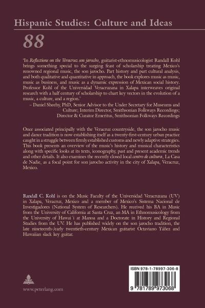 «In Reflections on the Veracruz son jarocho, guitarist-ethnomusicologist Randall Kohl brings something special to the surging feast of scholarship treating Mexico's renowned regional music, the son jarocho. Part history and part cultural analysis, and both qualitative and quantitative in approach, the book explores music as music, music as business, and music as a dynamic expression of Mexican social history. Professor Kohl of the Universidad Veracruzana in Xalapa interweaves original research with a half century of scholarship to chart key vectors in the evolution of a music, a culture, and a region.»