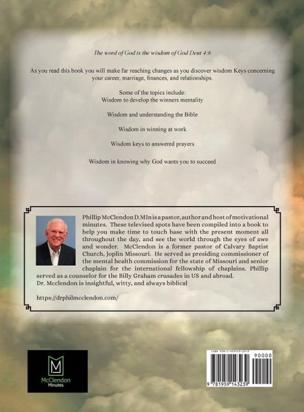 The word of God is the wisdom of God Deut 4:6 As you read this book you will make far-reaching changes as you discover wisdom Keys concerning your career, marriage, finances, and relationships. Some of the topics include: Wisdom to develop the winner's mentality Wisdom and understanding the Bible Wisdom in winning at work Wisdom keys to answered prayers Wisdom in knowing why God wants you to succeed