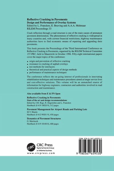 Proceedings of RILEM TC-PRC third conference on this subject. Papers from road authorities, engineers, researchers, contractors and manufacturers discussing the implementation and the long term behaviour of overlay systems. The following topics are covered: prevention and cracking assessment, choice and design of overlay systems, practical implemen