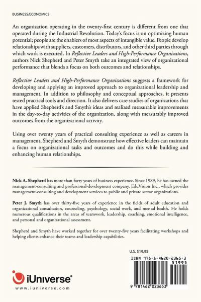 An organization operating in the twenty-first century is different from one that operated during the Industrial Revolution. Today's focus is on optimizing human potential; people are the enablers of most aspects of intangible value. People develop relationships with suppliers, customers, distributors, and other third parties through which work is executed. In Reflective Leaders and High-Performance Organizations, authors Nick Shepherd and Peter Smyth take an integrated view of organizational performance that blends a focus on both outcomes and relationships. Reflective Leaders and High-Performance Organizations suggests a framework for developing and applying an improved approach to organizational leadership and management. In addition to philosophy and conceptual approaches, it presents tested practical tools and direction. It also delivers case studies of organizations that have applied Shepherd's and Smyth's ideas and realized measurable improvements in the day-to-day activities of the organization, along with measurably improved outcomes from the organizational activity. Using over twenty years of practical consulting experience as well as careers in management, Shepherd and Smyth demonstrate how effective leaders can maintain a focus on organizational tasks and outcomes and do this while building and enhancing human relationships.