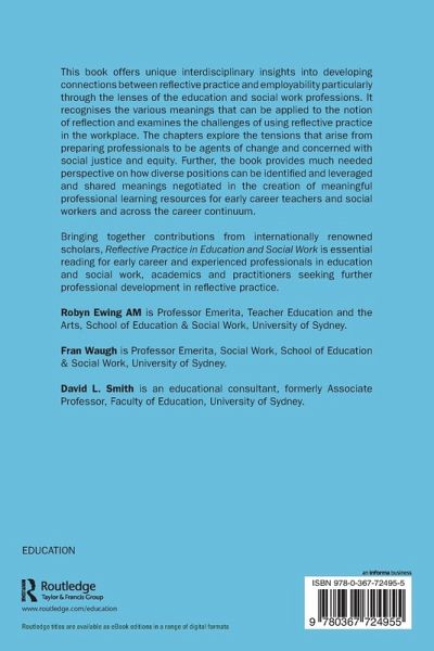 This book offers unique interdisciplinary insights into developing connections between reflective practice and employability particularly through the lenses of the education and social work professions. It recognises the various meanings that can be applied to the notion of reflection and examines the challenges of using reflective practice in the workplace. The chapters explore the tensions that arise from preparing professionals to be agents of change and concerned with social justice and equity. Further, the book provides much needed perspective on how diverse positions can be identified and leveraged and shared meanings negotiated in the creation of meaningful professional learning resources for early career teachers and social workers and across the career continuum.