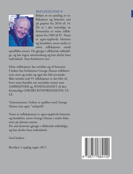 Boken er en samling av refleksjoner og historier, satt på papiret fra 2010 til 14. De er i det vesentlige en fortsettelse av mine refleksjoner fra 1989 til 97. Noen er egen-opplevde historier og hendelser, mens andre er mine refleksjoner rundt spesifikke emner. De gjengis i alfabetisk rekkefølge, og har ingen sammenheng og kan derfor leses individuelt. Som forfatteren sier: Mine refleksjoner har utviklet sig til historier. I boken har forfatteren George Manus reflektert over stort og smått og også det lidt uventede. Ikke mindre end 55 refleksjoner er det blitt til, hvor noen handler om…mehr