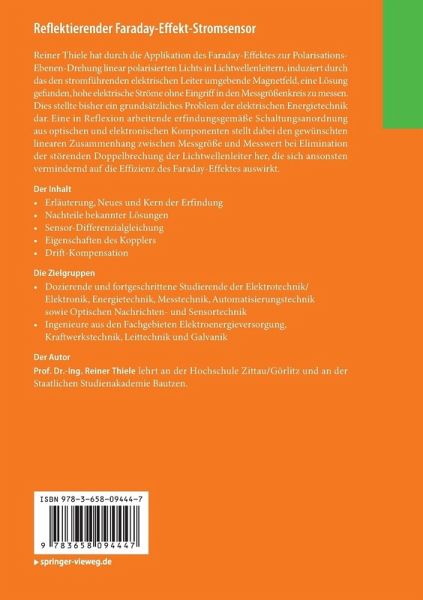 Reiner Thiele hat durch die Applikation des Faraday-Effektes zur Polarisations-Ebenen-Drehung linear polarisierten Lichts in Lichtwellenleitern, induziert durch das den stromführenden elektrischen Leiter umgebende Magnetfeld, eine Lösung gefunden, hohe elektrische Ströme ohne Eingriff in den Messgrößenkreis zu messen. Dies stellte bisher ein grundsätzliches Problem der elektrischen Energietechnik dar. Eine in Reflexion arbeitende erfindungsgemäße Schaltungsanordnung aus optischen und elektronischen Komponenten stellt dabei den gewünschten linearen Zusammenhang zwischen Messgröße und Messwert bei Elimination der störenden Doppelbrechung der Lichtwellenleiter her, die sich ansonsten vermindernd auf die Effizienz des Faraday-Effektes auswirkt.