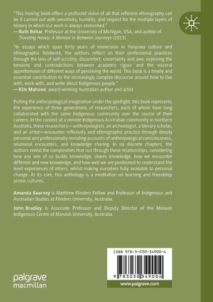 Putting the anthropological imagination under the spotlight, this book represents the experience of three generations of researchers, each of whom have long collaborated with the same Indigenous community over the course of their careers. In the context of a remote Indigenous Australian community in northern Australia, these researchers-anthropologists, an archeologist, a literary scholar, and an artist-encounter reflexivity and ethnographic practice through deeply personal and professionally revealing accounts of anthropological consciousness, relational encounters, and knowledge sharing. In six discrete chapters, the authors reveal the complexities that run through these relationships, considering how any one of us builds knowledge, shares knowledge, how we encounter different and new knowledge, and how well we are positioned to understand the lived experiences of others, whilst making ourselves fully available to personal change. At its core, this anthology is a meditationon learning and friendship across cultures.