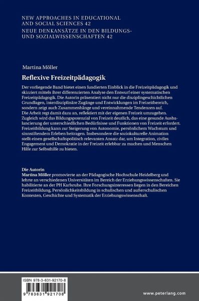 Der vorliegende Band bietet einen fundierten Einblick in die Freizeitpädagogik und skizziert mittels ihrer differenzierten Analyse den Entwurf einer systematischen Freizeitpädagogik. Die Autorin präsentiert nicht nur die disziplingeschichtlichen Grundlagen, interdisziplinäre Zugänge und Entwicklungen im Freizeitbereich, sondern zeigt auch Zusammenhänge und vereinnahmende Tendenzen auf.