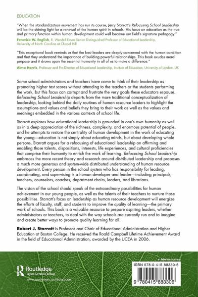 Refocusing School Leadership departs from the more traditional conceptualization of leadership, looking behind the daily routines of human resource leaders to highlight the assumptions and values and beliefs they bring to their work as well as the values and meanings embedded in the various contexts of school life. Starratt explores how educational leadership is grounded in one's own humanity as well as in a deep appreciation of the richness, complexity, and enormous potential of people, and he attempts to restore the centrality of human development in the work of educating the young-education is not simply about educating minds, but about developing whole persons. Starratt argues for a refocusing of educational leadership on affirming and enabling those talents, dispositions, interests, life experiences, and cultural proficiencies that comprise their humanity to enrich the work of learning. The vision of the school should speak of the extraordinary possibilities for human achievement in our young people, as well as the talents of their teachers to nurture those possibilities. Starratt's focus on leadership as human resource development will energize the efforts of faculty, staff, and students to improve the quality of learning-the primary work of schools. This book is a valuable resource to prepare aspiring leaders, whether administrators or teachers, to deal with the way schools are currently run and to imagine and create better ways to promote quality learning for all.