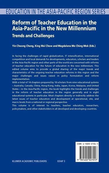 In facing the challenges of rapid globalization, IT intensification, international competition and local demands for developments, educators, scholars and leaders in the Asia-Pacific region and other parts of the world are concerned with reforms of teacher education for the future of education in the new millennium. This edited volume aims to provide a global sharing of the major trends and characteristics of the ongoing teacher education reforms in this region and the major challenges and issues raised in policy formulation and reform implementation.