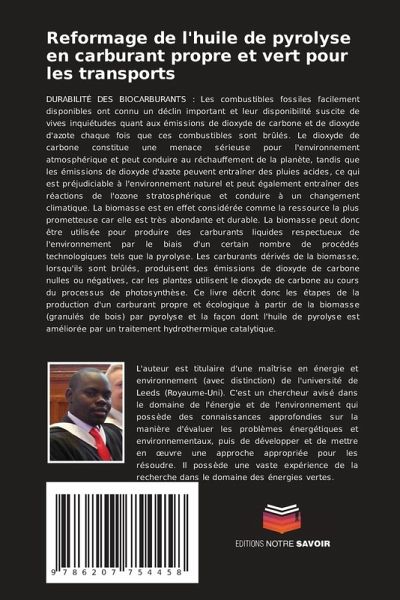 DURABILITÉ DES BIOCARBURANTS : Les combustibles fossiles facilement disponibles ont connu un déclin important et leur disponibilité suscite de vives inquiétudes quant aux émissions de dioxyde de carbone et de dioxyde d'azote chaque fois que ces combustibles sont brûlés. Le dioxyde de carbone constitue une menace sérieuse pour l'environnement atmosphérique et peut conduire au réchauffement de la planète, tandis que les émissions de dioxyde d'azote peuvent entraîner des pluies acides, ce qui est préjudiciable à l'environnement naturel et peut également entraîner des réactions de l'ozone stratosphérique et conduire à un changement climatique. La biomasse est en effet considérée comme la ressource la plus prometteuse car elle est très abondante et durable. La biomasse peut donc être utilisée pour produire des carburants liquides respectueux de l'environnement par le biais d'un certain nombre de procédés technologiques tels que la pyrolyse. Les carburants dérivés de la biomasse, lorsqu'ils sont brûlés, produisent des émissions de dioxyde de carbone nulles ou négatives, car les plantes utilisent le dioxyde de carbone au cours du processus de photosynthèse. Ce livre décrit donc les étapes de la production d'un carburant propre et écologique à partir de la biomasse (granulés de bois) par pyrolyse et la façon dont l'huile de pyrolyse est améliorée par un traitement hydrothermique catalytique.
