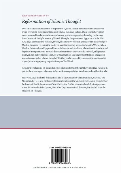 Ever since the dramatic events of September 11, 2001 the fundamentalist and exclusivist trend prevails in most presentations of Islamic thinking. Indeed, these events have given extremists and fundamentalists a much more prominent position than they might ever have dreamt of.In Reformation of Islamic Thought, the prominent Egyptian scholar Nasr Abû Zayd examines the positive, liberal, and inclusive reaction embedded in the writings of Muslim thinkers. He takes the reader on a critical journey across the Muslim World, where Muslim thinkers from Egypt and Iran to Indonesia seek to divest Islam of traditionalistic and legalistic interpretation. Instead, these thinkers stress the value of a cultural, enlightened Islam, and an individualistic faith.For many, the dogmatic Islam established by the conservatives and supported by totalitarian political regimes is outdated; they want it replaced by a spiritual and ethical Islam. To what extent are these reformist thinkers engaged in a genuine renewal of Islamic thought? Do they succeed in escaping the traditionalist trap of presenting a purely negative image of the West?