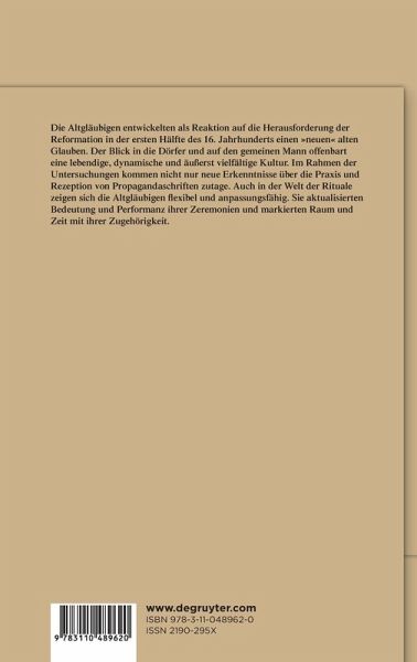Die Altgläubigen in der ersten Hälfte des 16. Jahrhunderts wurden in der Forschung lange als die kulturell und rituell unproduktive Kehrseite der Reformation gesehen. Die Analyse von fünf Fallstudien aus dem Alten Reich und Frankreich sowie von überregionalen Flugschriften widerlegt dieses Bild. Der Blick in die Dörfer und auf den gemeinen Mann offenbart eine lebendige, dynamische und äußerst vielfältige Kultur. Die Altgläubigen entwickeln einen neuen alten Glauben als Reaktion auf die reformatorischen Herausforderungen. Im Rahmen der Untersuchungen kommen nicht nur neue Erkenntnisse über die Praxis und Rezeption von Propagandaschriften zutage. Auch in der Welt der Rituale zeigen sich die Altgläubigen flexibel und anpassungsfähig. Sie aktualisieren Bedeutung und Performanz ihrer Zeremonien und markieren Raum und Zeit mit ihrer neuen Zugehörigkeit.