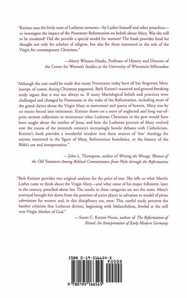 Catholics and Protestants have, since the earliest days of the Reformation, held markedly different views about the Virgin Mary. In Reforming Mary Beth Kreitzer examines the development of Lutheran views on this subject as expressed in 16th-century Lutheran published sermons, starting with the earliest of Luther's own Reformation sermons.