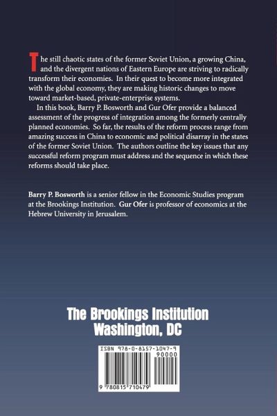 " The still chaotic states of the former Soviet Union, a growing China, and the divergent nations of Eastern Europe are striving to radically transform their economies. In their quest to become more integrated with the global economy, they are making historic changes to move toward market-based, private-enterprise systems. In this book, Barry P. Bosworth and Gur Ofer provide a balanced assessment of the progress of integration among the formerly centrally planned economies. So far, the results of the reform process range from amazing success in China to economic and political disarray in the states of the former Soviet Union. The authors outline the key issues that any successful reform program must address and the sequence in which these reforms should take place. A volume of Brookings' Integrating National Economies Series "