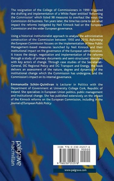 "The author empirically investigates three major aspects of the reforms. ... Combining interview data with a thorough analysis of official documents, the book nicely complements previous research on the Kinnock reforms ... with a comprehensive focus on changes in formal structures and management procedure. ... are relevant not only for Commission experts and public management scholars, but also for researchers and practitioners interested in organizational change and the implementation of administrative policies. ... a timely and relevant read." (Jörn Ege, Journal of Common Market Studies, Vol. 53 (5), 2015)