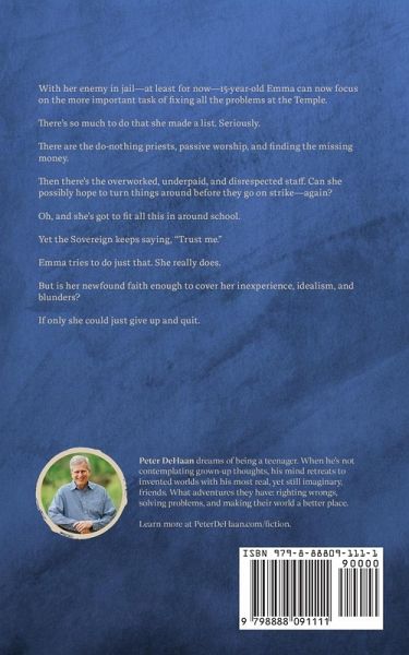 With her enemy in jail-at least for now-15-year-old Emma can now focus on the more important task of fixing all the problems at the Temple. There's so much to do that she made a list. Seriously. There are the do-nothing priests, passive worship, and finding the missing money. Then there's the overworked, underpaid, and disrespected staff. Can she possibly hope to turn things around before they go on strike-again? Oh, and she's got to fit all this in around school. Yet the Sovereign keeps saying, "Trust me." Emma tries to do just that. She really does. But is her newfound faith enough to cover her inexperience, idealism, and blunders? If only she could just give up and quit. Get your copy of Reforming the Religion to find out what happens.