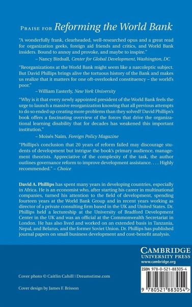 Part I. Origins and Evolution: 1. What does the World Bank do and how does it do it? 2. The emerging critique Part II. The Search for Effectiveness: 3. Fifty years of bank reforms 4. The 1990s - reengineering the organization 5. Changing culture and changing people 6. Reforming the bank's assistance product 7. Changing the quality of development assistance 8. Financing the reorganization 9. Why did the reforms fail? Part III. Towards Real Reform: The Governance Agenda: 10. The governors and the directors 11. The leadership 12. Looking back and looking forward: what is to be done?
