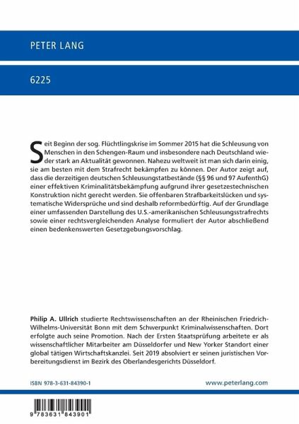 Seit Beginn der sog. Flüchtlingskrise im Sommer 2015 hat die Schleusung von Menschen in den Schengen-Raum und insbesondere nach Deutschland wieder stark an Aktualität gewonnen. Nahezu weltweit ist man sich darin einig, sie am besten mit dem Strafrecht bekämpfen zu können. Der Autor zeigt auf, dass die derzeitigen deutschen Schleusungstatbestände (§§ 96 und 97 AufenthG) einer effektiven Kriminalitätsbekämpfung aufgrund ihrer gesetzestechnischen Konstruktion nicht gerecht werden. Sie offenbaren Strafbarkeitslücken und systematische Widersprüche und sind deshalb reformbedürftig. Auf der Grundlage einer umfassenden Darstellung des U.S.-amerikanischen Schleusungsstrafrechts sowie einer rechtsvergleichenden Analyse formuliert der Autor abschließend einen bedenkenswerten Gesetzgebungsvorschlag.