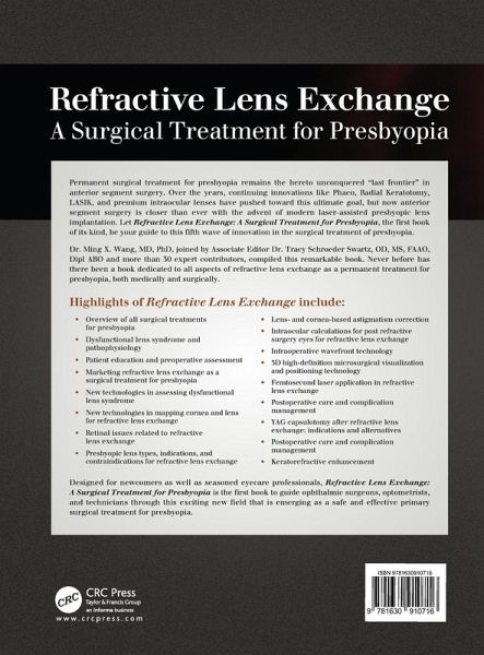 FACS Chapter 3 Patient Education Issues in the Emerging Refractive Lens Exchange MarketJohn B. Pinto Chapter 4 Preoperative Assessment for Refractive Lens ExchangeNeel R. Desai