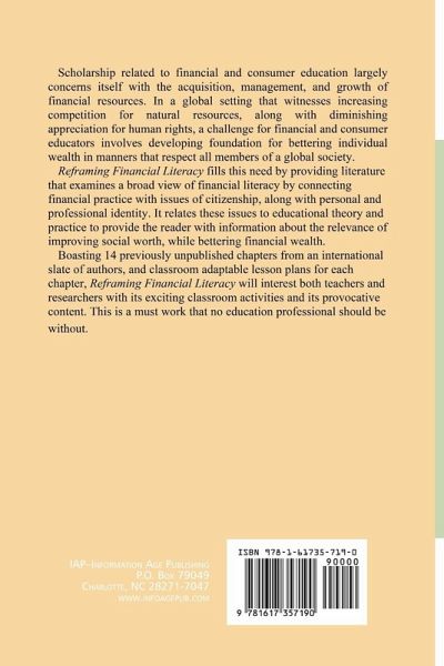 Scholarship related to financial and consumer education largely concerns itself with the acquisition, management, and growth of financial resources. In a global setting that witnesses increasing competition for natural resources, along with diminishing appreciation for human rights, a challenge for financial and consumer educators involves developing foundation for bettering individual wealth in manners that respect all members of a global society. Reframing Financial Literacy fills this need by providing literature that examines a broad view of financial literacy by connecting financial practice with issues of citizenship, along with personal and professional identity. It relates these issues to educational theory and practice to provide the reader with information about the relevance of improving social worth, while bettering financial wealth. Boasting 14 previously unpublished chapters from an international slate of authors, and classroom adaptable lesson plans for each chapter, Reframing Financial Literacy will interest both teachers and researchers with its exciting classroom activities and its provocative content. This is a must work that no education professional should be without.
