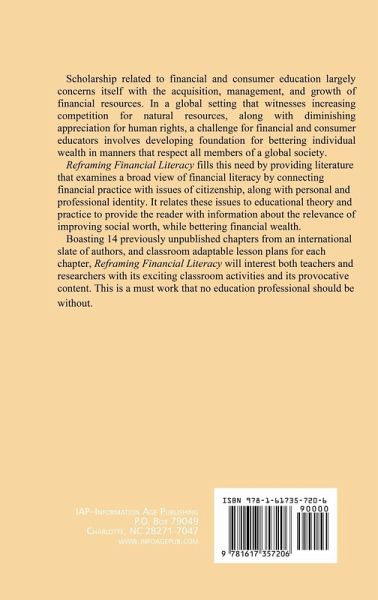Scholarship related to financial and consumer education largely concerns itself with the acquisition, management, and growth of financial resources. In a global setting that witnesses increasing competition for natural resources, along with diminishing appreciation for human rights, a challenge for financial and consumer educators involves developing foundation for bettering individual wealth in manners that respect all members of a global society. Reframing Financial Literacy fills this need by providing literature that examines a broad view of financial literacy by connecting financial practice with issues of citizenship, along with personal and professional identity. It relates these issues to educational theory and practice to provide the reader with information about the relevance of improving social worth, while bettering financial wealth. Boasting 14 previously unpublished chapters from an international slate of authors, and classroom adaptable lesson plans for each chapter, Reframing Financial Literacy will interest both teachers and researchers with its exciting classroom activities and its provocative content. This is a must work that no education professional should be without.