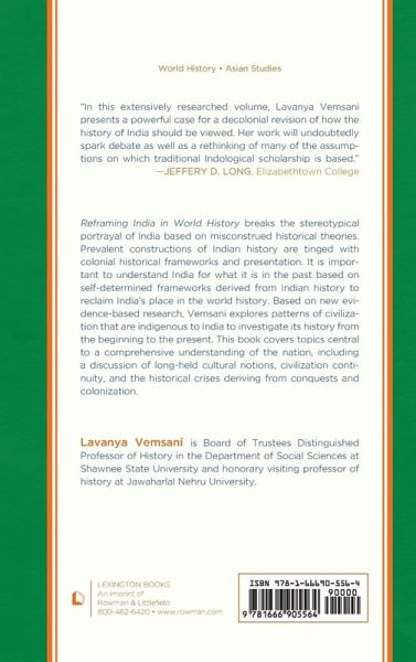Reframing India in World History breaks the stereotypical portrayal of India based on misconstrued historical theories. Prevalent constructions of Indian history are tinged with colonial historical frameworks and presentation. It is important to understand India for what it is in the past based on self-determined frameworks derived from Indian history to reclaim India's place in the world history. Based on new evidence-based research, Lavanya Vemsani explores patterns of civilization that are indigenous to India to investigate its history from the beginning to the present. This book covers topics central to a comprehensive understanding of the nation including a discussion of long held cultural notions, civilization continuity, and the historical crises deriving from conquests and colonization.