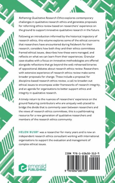 This book contains three Open Access chapters. Reframing Qualitative Research Ethics explores contemporary challenges in qualitative research ethics and generates proposals for reforming ethics review based on researchersâ experience on the ground to support innovative qualitative research in the future.