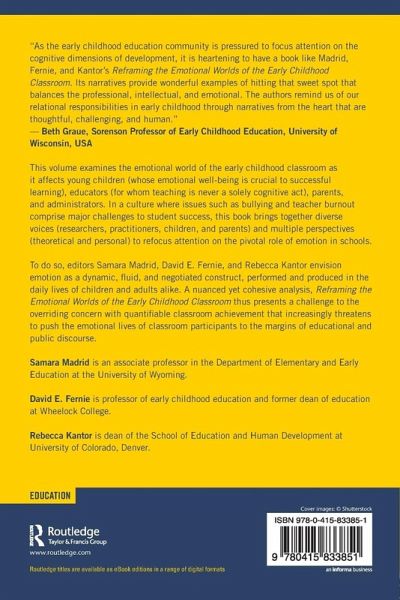This volume examines the emotional world of the early childhood classroom as it affects young children (whose emotional wellbeing is crucial to successful learning), educators (for whom teaching is never a solely cognitive act), parents, and administrators. In a culture where issues such as bullying and teacher burnout comprise major challenges to student success, this book brings together diverse voices (researchers, practitioners, children, and parents) and multiple perspectives (theoretical and personal) to refocus attention on the pivotal role of emotion in schools. To do so, editors Samara Madrid, David Fernie, and Rebecca Kantor envision emotion as a dynamic, fluid, and negotiated construct, performed and produced in the daily lives of children and adults alike. A nuanced yet cohesive analysis, Reframing the Emotional Worlds of the Early Childhood Classroom thus presents a challenge to the overriding concern with quantifiable classroom achievement that increasingly threatens to push the emotional lives of classroom participants to the margins of educational and public discourse.