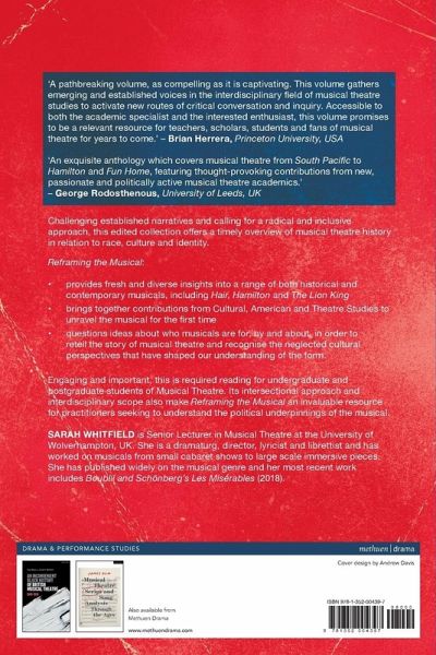 This critical and inclusive edited collection offers an overview of the musical in relation to issues of race, culture and identity. Bringing together contributions from Cultural, American and Theatre Studies for the first time, the chapters offer fresh perspectives on musical theatre history, calling for a radical and inclusive new approach. By questioning ideas about what the musical is about and who it for, this groundbreaking book retells the story of the musical, prioritising previously neglected voices to reshape our understanding of the form. Timely and engaging, this is required reading for undergraduate and postgraduate students of Musical Theatre. It offers an intersectional approach which will also be invaluable for theatre practitioners.
