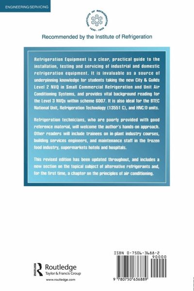 Refrigeration Equipment is a clear, practical guide to the installation, testing and servicing of industrial and domestic refrigeration equipment.