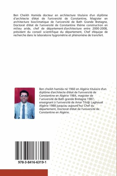 Ben Cheikh Hamida docteur en architecture titulaire d'un diplôme d'architecte d'état de l'université de Constantine, Magister en architecture bioclimatique de l'université de Bath Grande Bretagne, Doctorat d'état de l'université de Constantine thème construction en milieu aride, chef de département d'architecture entre 2000-2008, présidant du conseil scientifique du département, Chef d'équipe de recherche dans le laboratoire hygrométrie et phénomène de transfert.