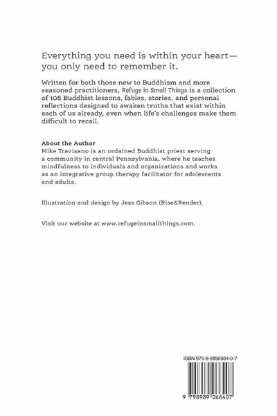 Everything you need is within your heart-you only need to remember it. Written for both those new to Buddhism and seasoned practitioners alike, Refuge In Small Things is 108 Buddhist lessons, fables, stories, and personal reflections designed to awaken truths that exist within each of us already, even when life's challenges make them difficult to recall.