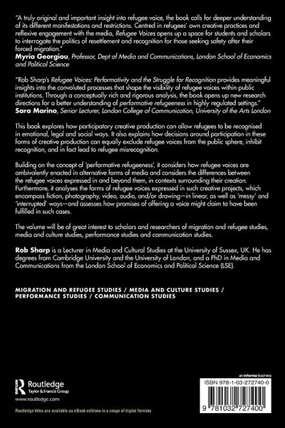 "Rob Sharp's Refugee Voices: Performativity and the Struggle for Recognition provides meaningful insights into the convoluted processes that shape the visibility of refugee voices within public institutions. Through a conceptually rich and rigorous analysis, the book opens up new research directions for a better understanding of performative refugeeness in highly regulated settings." - Sara Marino, Senior Lecturer, London College of Communication, University of the Arts London