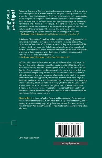 Joint Winner of the 2012 TaPRA Early Career Researcher Prize 'Refugees, Theatre and Crisismarks a timely response to urgent political questions about the experiences of asylum seekers and refugees. Scholarly and incisive, the power of this book lies is in Alison Jeffers political clarity, her empathetic understanding of why refugees are compelled to make theatre and her vivid analysis of how theatre-makers have told refugees' stories on the professional stage. The impressively rich material and detailed case studies provide insights into the ways in which theatre and performance are used as a means of cultural expression, and asks how cultural identities are shaped in the process. This remarkable book is compelling reading for anyone who cares about human rights and theatre.' - Professor Helen Nicholson, Royal Holloway, University of London, UK 'In Refugees, Theatre and Crisis, Alison Jeffers provides a compelling account of the complex relations between refugee communities, the theatre practices they create and the 'bureaucratic' performances in which they become enmeshed. This is a theoretically rich book, brim full of previously undocumented examples of practice - a wonderful read and an inspiration for students, teachers and practitioners interested in those moments when theatre seems to illuminate unexpected contours of these crisis-dominated times.' - Professor James Thompson, University of Manchester, UK '...[a] meticulously researched, compassionate book... This is an important book about the stakes involved when connection is sought across vast gaps in life opportuntity, status and power...' - Emma Cox, Research in Drama Education 'Jeffers' book offers an original and provocative contribution to scholars and practitioners in Refugee Studies and Theatre and Performance Studies, particularly Applied, Social and Community Theatre. It is both a call for and significant contribution to an ethical understanding of refugees.' - Caoimhe McAvinchey, New Theatre Quarterly 'The book Refugees, Theatre and Crisis: Performing Global Identities, recipient of the 2012 TaPRA award in the category New Career Research in Theatre/Performance, is a timely and valuable addition to the growing field of exilic and refugee theatre studies... a vital addition to the studies of global theatre today and an important reference source in theatre and performance studies, cultural studies and public history.' - Yana Meerzon, Theatre Research International