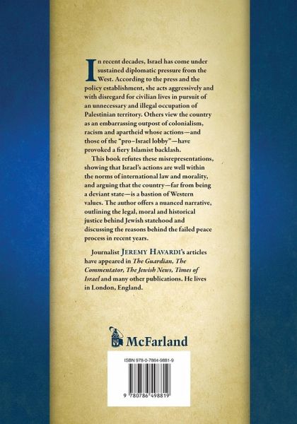 In recent decades, Israel has come under sustained diplomatic pressure from the West. According to the press and the policy establishment, she acts aggressively and with disregard for civilian lives in pursuit of an unnecessary and illegal occupation of Palestinian territory. Others view the country as an embarrassing outpost of colonialism, racism and apartheid whose actions--and those of the "pro-Israel lobby"--have provoked a fiery Islamist backlash. This book refutes these misrepresentations, showing that Israel's actions are well within the norms of international law and morality, and arguing that the country--far from being a deviant state--is a bastion of Western values. The author offers a nuanced narrative, outlining the legal, moral and historical justice behind Jewish statehood and discussing the reasons behind the failed peace process in recent years.