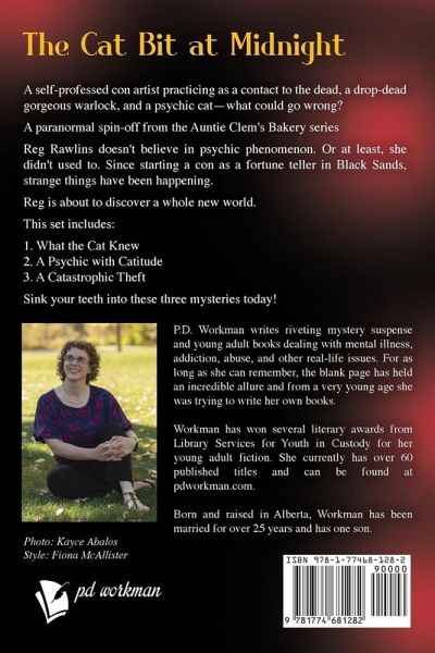 By USA Today bestselling author P.D. Workman A self-professed con artist practicing as a contact to the dead, a drop dead gorgeous warlock , and a psychic cat - what could go wrong? Give yourself a treat and buy the first three books in the Reg Rawlins, Psychic Detective series for one low price. This set includes: 1. What the Cat Knew The fortune teller gig started as a scam, but Reg suddenly finds herself tangled up in the case of Warren Blake, a man who she thought was dead. It turns out he may still be alive, but in mortal peril. 2. A Psychic with Catitude Reg Rawlins is back in business, asked by Detective Jessup to consult on a missing persons case. Little does she know that it's not your average teen runaway or kidnapping. There is something strange going on, and time is running short for the missing teen. 3. A Catastrophic Theft Reg's relationship with Sarah, who has been her loyal friend and protector since she arrived becomes strained when Sarah's precious emerald necklace disappears. There is no shortage of suspects, with Reg herself at the front of the line. Get your paws on it now!