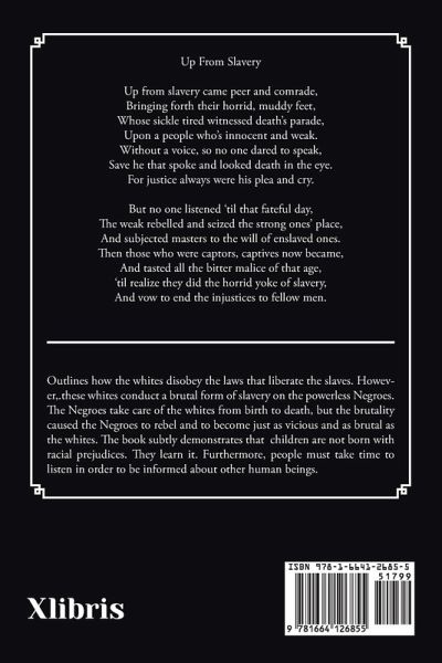 Outlines how the whites disobey the laws that liberate the slaves. However,.these whites conduct a brutal form of slavery on the powerless Negroes. The Negroes take care of the whites from birth to death, but the brutality caused the Negroes to rebel and to become just as vicious and as brutal as the whites. The book subtly demonstrates that children are not born with racial prejudices. They learn it. Furthermore, people must take time to listen in order to be informed about other human beings.