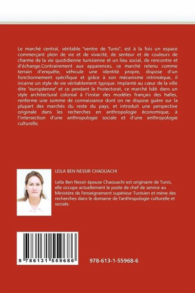 Le marché central, véritable "ventre de Tunis", est à la fois un espace commerçant plein de vie et de vivacité, de senteur et de couleurs de charme de la vie quotidienne tunisienne et un lieu social, de rencontre et d'échange.Contrairement aux apparences, ce marché retenu comme terrain d'enquête, véhicule une identité propre, dispose d'un fonctionnement spécifique et grâce à son mécanisme intrinsèque, il incarne un style de vie véritablement typique. Implanté au c ur de la ville dite "européenne" et ce pendant le Protectorat, ce marché bâti dans un style architectural colonial à l'instar des modèles français des halles, renferme une somme de connaissance dont on ne dispose guère sur la plupart des marchés du reste du pays, et introduit une perspective originale dans les recherches en anthropologie économique, à l'intersection d'une anthropologie sociale et d'une anthropologie culturelle.
