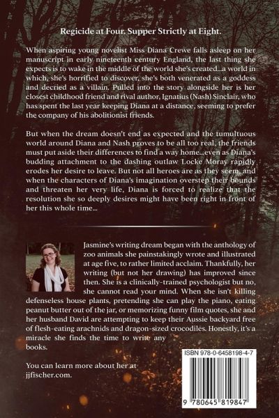 Regicide at Four. Supper Strictly at Eight. When aspiring young novelist Miss Diana Crewe falls asleep on her manuscript in early nineteenth century England, the last thing she expects is to wake in the middle of the world she's created...a world in which, she's horrified to discover, she's both venerated as a goddess and decried as a villain. Pulled into the story alongside her is her closest childhood friend and rival author, Ignatius (Nash) Sinclair, who has spent the last year keeping Diana at a distance, seeming to prefer the company of his abolitionist friends. But when the dream doesn't end as expected and the tumultuous world around Diana and Nash proves to be all too real, the friends must put aside their differences to find a way home...even as Diana's budding attachment to the dashing outlaw Locke Moray rapidly erodes her desire to leave. But not all heroes are as they seem, and when the characters of Diana's imagination overstep their bounds and threaten her very life, Diana is forced to realize that the resolution she so deeply desires might have been right in front of her this whole time... Regency & Regicide is a standalone romantic historical fantasy adventure in which Jane Austen's Emma meets Sir Walter Scott's Ivanhoe. J. J. Fischer is the award-winning author of Calor, which won the 2023 Realm Award Book of the Year and the Realm Award for Best Fantasy.