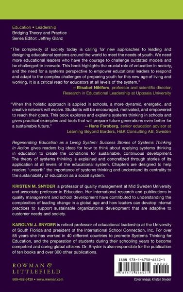 Kristen M. Snyder is a Professor of Quality Management at Mid Sweden University and an Associate professor in Education. Her international research and publications in quality management and school development have contributed to understanding the complexities of leading change in a global age, and how leaders can develop internal practices to support sustainable organizational development that is adaptive to customer needs and society. Karolyn J. Snyder, Retired Professor of Educational Leadership at the University of South Florida, and President of the International School Connection, Inc. Over 55 years she worked in 40 different countries to promote Systems Thinking for Education, and the preparation of students during their schooling years to become competent and caring global citizens. Dr. Snyder is also responsible for the publication of six books and over 300 other publications