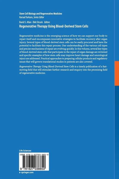 Undertaking Regenerative Medicine Studies with Blood Stem Cells.- Defining Endothelial Progenitor Cells.- Blood-Derived ALDHhi Cells in Tissue Repair.- Blood Derived Mesenchymal Stem Cells and Tissue Repair.- Animal Protein-Free Expansion of Human Mesenchymal Stem / Progenitor Cells.- Defining Hierarchies of USSC and MSC in Cord Blood.- iPS Cells from Blood-Derived Cells.- Endothelial Progenitors and Repair of Cardiovascular Disease.- Bone Marrow-Derived Cells as Treatment Vehicles in the Central Nervous System.- Regenerative Potential of Blood Stem Cell Products Used in Hematopoietic Stem Cell Transplantation.- Concepts to Facilitate Umbilical Cord Blood Transplantation.- Cord Blood Banking for Regenerative Therapy.- Regulatory Questions in the Development of Blood Stem Cell Products for Regenerative Therapy.- Cell Therapy Regulations from a European Perspective.- EBMT Registry of Non-Hematopoietic Stem Cells and Regenerative Therapy (Cellular and Engineered Tissue Therapies in Europe).