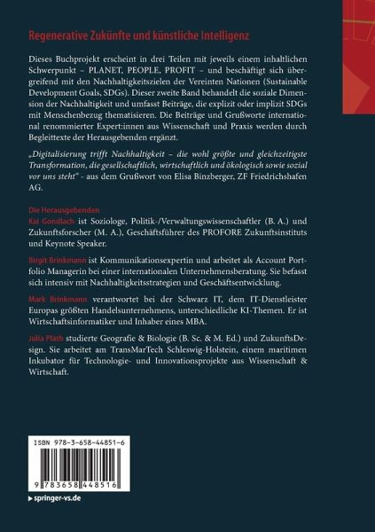 Der Band basiert auf den 17 Entwicklungszielen (SDGs) der UNO und entwickelt für die Wirtschaft Zukunftsperspektiven zum Zusammenhang von KI und Nachhaltigkeit.