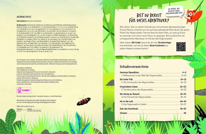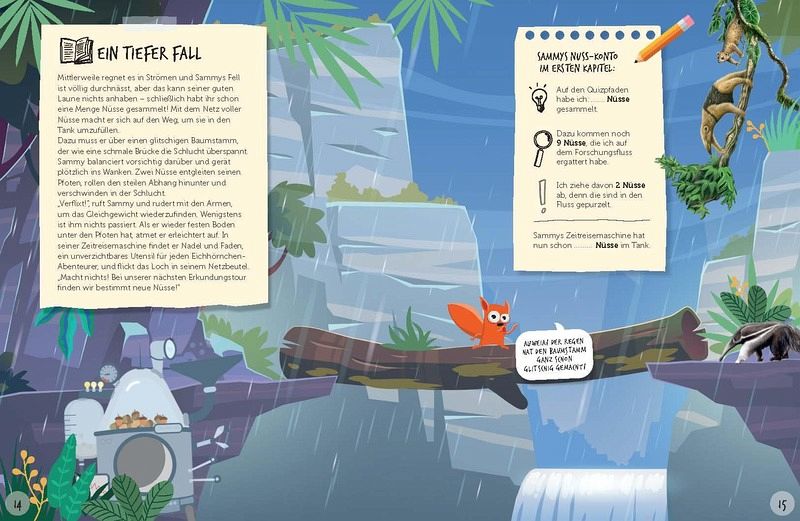 Begleite Sammy, den mutigen Eichhörnchen-Abenteurer, auf eine aufregende Expedition in die Tiefen des Regenwaldes! In "Sammy checkt's: Regenwald-Safari" landet Sammy mit seiner Zeitreisemaschine mitten in einer Welt voller exotischer Pflanzen und Tiere. Gemeinsam mit ihm begibst du dich auf eine spannende Expedition, um Nüsse zu sammeln - den Treibstoff, mit dem er wieder nach Hause kommt.Abenteuer Wissen: Entdecke mit Sammy den Regenwald, eines der artenreichsten Ökosysteme der Erde mit Millionen von Pflanzen- und Tierarten. Lerne seine unglaubliche Vielfalt spielerisch durch spannende Quizfragen kennen.Ein Abenteuer, das dich in die Wunder des Regenwaldes entführt und dir die Schätze dieses einzigartigen Lebensraumes offenbart!