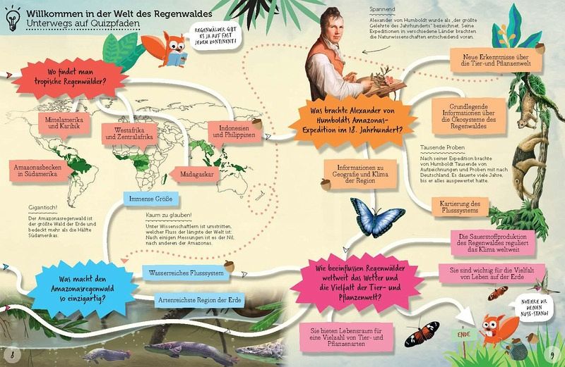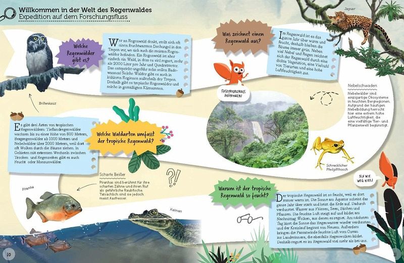 Regenwald-Safari: Teste dein Wissen Ich habe dieses Buch mit großer Neugier zur Hand genommen, da ich schon lange auf der Suche nach einem Werk bin, das mir spannende Einblicke in die Welt des Regenwaldes liefert. "Regenwald-Safari: Teste dein Wissen" überzeugt mich von Anfang an mit einem klar strukturierten Aufbau: Die einzelnen Kapitel widmen sich unterschiedlichen Themen wie Tierarten, Pflanzenvielfalt, Ökosystemen und dem Zusammenspiel der verschiedenen Lebewesen im tropischen Regenwald. Jede Doppelseite lädt dazu ein, den eigenen Wissensstand zu prüfen. Am Ende eines Kapitels warten knifflige Quizfragen, die mich immer wieder motiviert haben, mein Wissen zu vertiefen. Wissensvermittlung und Lernerfahrung Der didaktische Ansatz ist gelungen und macht mir das Lernen leicht. Fachinformationen werden gut verständlich präsentiert, ohne dabei den wissenschaftlichen Anspruch zu verlieren. Ich finde es beeindruckend, wie das Buch es schafft, komplexe Zusammenhänge so aufzubereiten, dass ich sofort einen Draht zur Thematik finde. Die gut platzierten Wissenshappen bleiben im Gedächtnis, was den Lerneffekt eindeutig steigert. Außerdem sorgen weiterführende Hinweise und Tipps dafür, dass ich motiviert bin, mich auch außerhalb des Buches intensiv mit dem Thema Regenwald zu beschäftigen. Gestaltung und Illustrationen Die Gestaltung ist ansprechend und modern. Die Farben sind leuchtend, die Seiten klar gegliedert und durch liebevoll gestaltete Icons und Infoboxen aufgelockert. Dadurch fühle ich mich direkt in den dichten Dschungel versetzt und spüre die tropische Atmosphäre. Besonders die Illustrationen fangen den Zauber des Regenwaldes ein: Exotische Vogelarten, farbenfrohe Schmetterlinge, imposante Affen und endlose Pflanzenvielfalt - alles wirkt lebendig und naturnah. Ich blättere gerne erneut durch das Buch, nur um die Bilder zu betrachten. Zielgruppe und Einsatzmöglichkeiten Ich sehe in diesem Buch sowohl für Kinder als auch für Erwachsene einen großen Mehrwert. Für junge Leserinnen und Leser ist es ein idealer Einstieg in die Welt des Regenwaldes, da die Quizfragen spielerisch zum Mitdenken anregen. Erwachsene können ihr Wissen auffrischen oder vertiefen. Ebenso eignet es sich für den Einsatz im Schulunterricht, in Bibliotheken oder als Geschenk für Naturliebhaber und alle, die mehr über unseren bedrohten Lebensraum erfahren möchten. Über den Illustrator Ferruccio Cucchiarini Ich habe vorab ein wenig über den Illustrator Ferruccio Cucchiarini recherchiert und erfahren, dass er sich auf naturkundliche Illustrationen spezialisiert hat. Seine Arbeiten sind international bekannt und zeichnen sich durch hohe Detailtreue und ein Gespür für die Ästhetik der Natur aus. Dieses Talent spiegelt sich deutlich in "Regenwald-Safari: Teste dein Wissen" wider. Die Illustrationen erwecken den Eindruck, direkt vor Ort zu sein und machen das Buch zu einem visuellen Erlebnis. Fazit "Regenwald-Safari: Teste dein Wissen" hat mich rundum überzeugt. Es bietet umfangreiche Informationen, verpackt in ein ansprechendes Layout und untermalt von hochwertigen Illustrationen. Die Mischung aus Sachwissen und spielerischen Elementen hat mich nicht nur unterhalten, sondern auch dazu inspiriert, mich tiefgreifender mit dem Thema Regenwald auseinanderzusetzen. Ein empfehlenswertes Werk für Wissbegierige und Naturfreunde