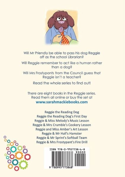 An early reader specifically designed for children who are new to reading, reluctant to read, are learning English as a second language or who have a reading disability such as dyslexia. These books have been developed in conjunction with the Kennel Club's Bark & Read Scheme which sponsors charitable organisations to visit schools with service dogs to help give children confidence in their reading. The series follows Reggie - the Head Teacher's pet dog as he is passed off as the new school Librarian. Will Mr Priendly be able to pass his dog Reggie off as the school Librarian? Will Reggie remember to act like a human rather than a dog? Will Mrs Frostypants from the Council guess that Reggie isn’t a teacher? Read the whole series to find out! In this, the fifth book in the series, Reggie must supervise the class when Miss Amber is called away!