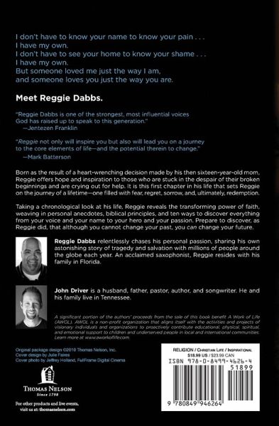 I don't have to see your home to know your shame . . . I have my own. But someone loved me just the way I am, and someone loves you just the way you are. Meet Reggie Dabbs. Born as the result of a heart-wrenching decision made by his then sixteen-year-old mom, Reggie offers hope and inspiration to those who are stuck in the despair of their broken beginnings and are crying out for help. It is this first chapter in his life that sets Reggie on the journey of a lifetime--one filled with fear, regret, sorrow, and, ultimately redemption. Taking a chronological look at his life, Reggie reveals the transforming power of faith, weaving in personal anecdotes, biblical principles, and ten ways to discover everything from your voice and your name to your hero and your passion. Prepare to discover, as Reggie did, that although you cannot change your past, you can change your future. "Reggie Dabbs is one of the strongest, most influential voices God has raised up to speak to this generation."--Jentezen Franklin "Reggie not only will inspire you but also will lead you on a journey to the core elements of life--and the potential therein to change."--Mark Batterson