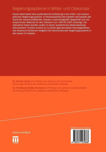 Der vorliegende Band bietet eine systematische Einführung in die mittel- und osteuropäischen Regierungssysteme. In themenspezifischen Kapiteln wird jeweils der Stand der wissenschaftlichen Literatur zusammengefaßt dargestellt und mit empirischem Material für den Zeitraum von 1989/90-2008 unterlegt. Die relevanten Daten werden zudem in einem ausführlichen Materialanhang dokumentiert. Insofern kommt es zu einem gleichermaßen theoriegeleiteten wie empirisch fundierten Vergleich der demokratischen Regierungssysteme in den neuen EU-Staaten.